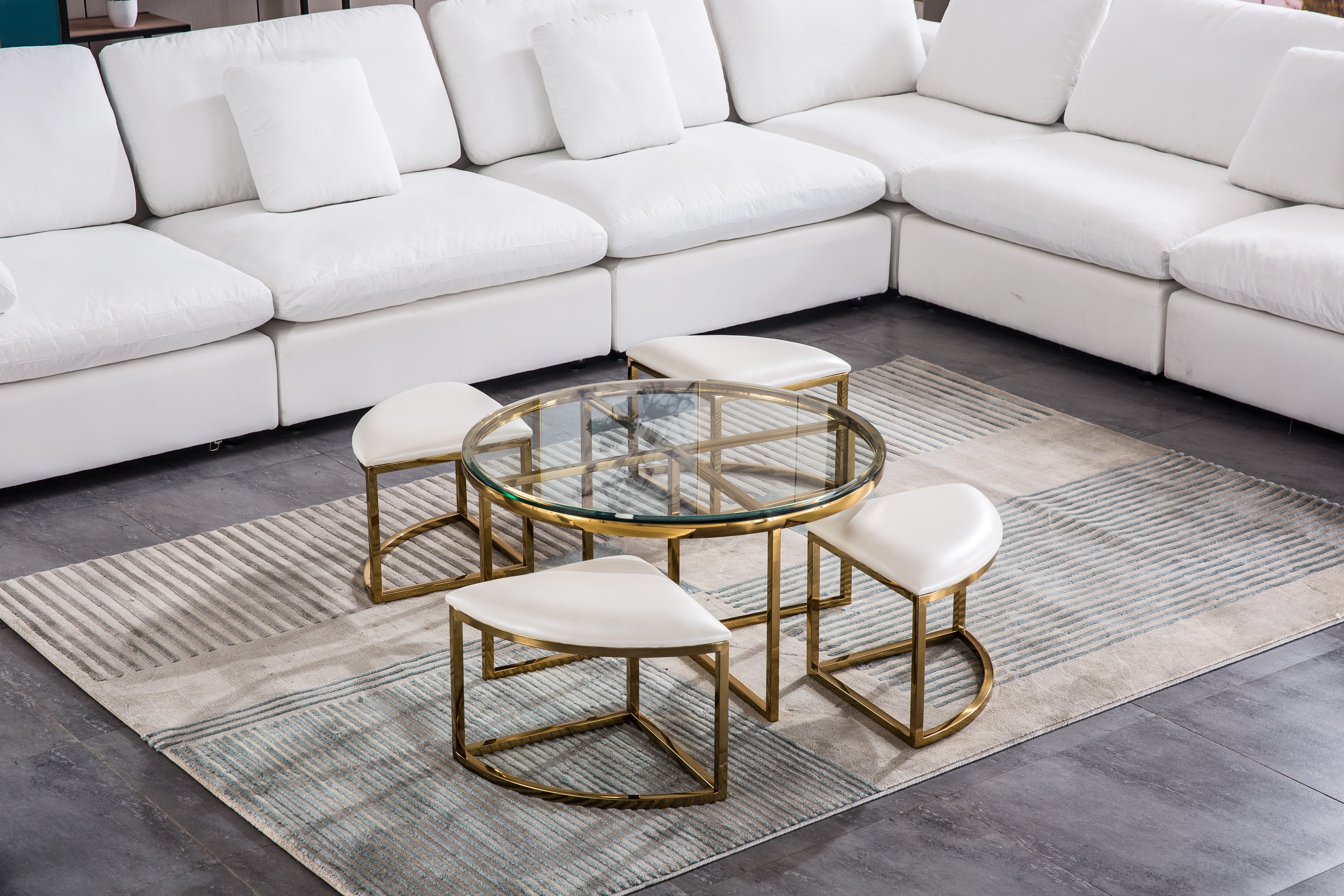 10MM CLEAR TEMPERED GLASS/STAINLESS STEEL/GOLD MIRRORED FINISH/WHITE LEATHERETTE