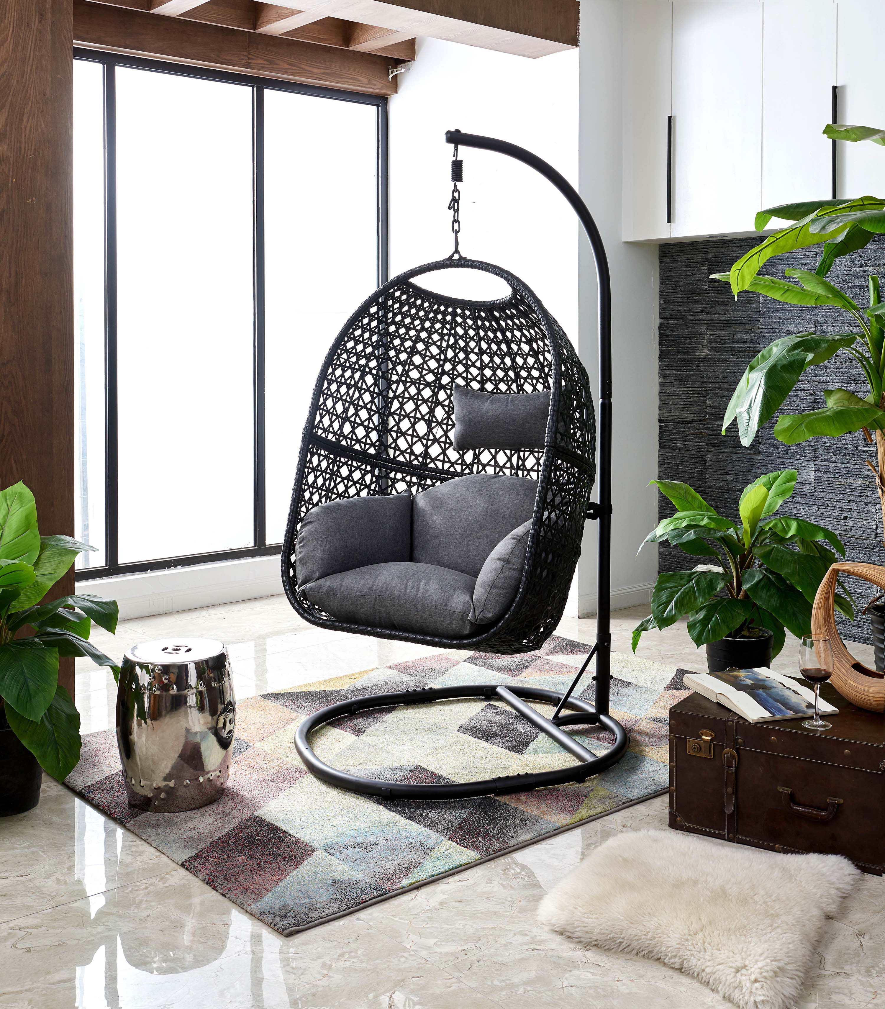 BLACK POWDER COATED STEEL FRAME/PE RATTAN/UP TO 300LBS/BLACK BASKET