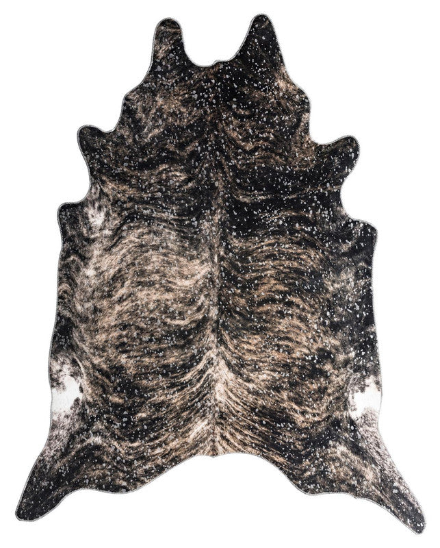 Brighten up your room with this contemporary, yet rustic faux cowhide rug. The cowhide shape adds a natural feel, while the metallic accents provide stylish flair. This rug is not only beautiful it also provides a soft texture under foot.