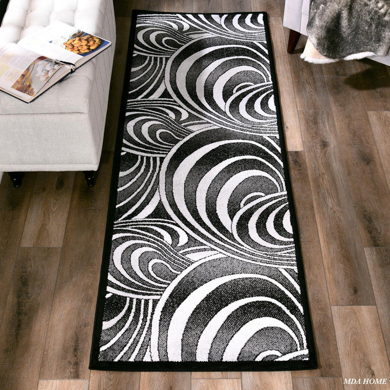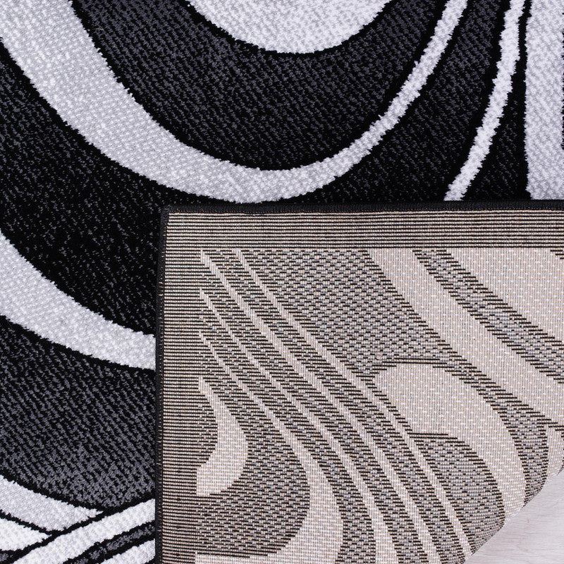 Create contemporary appeal with the Winthrop area rug from Porch & Den. The polypropylene pile is covered in abstract black and white swirls to accent your eclectic aesthetic. Choose from three sizes to suit your space.