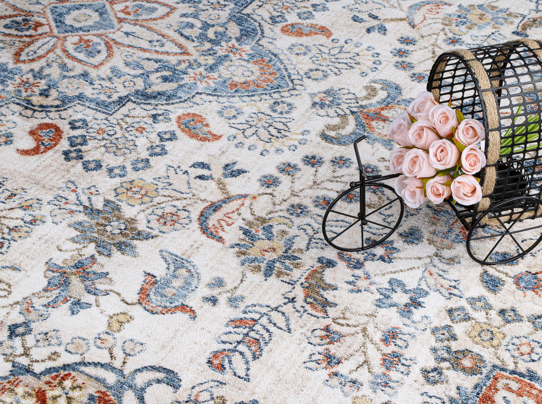 This contemporary designed area rug is constructed from 100% solution-dyed Polyester with a cotton backing. It features wilton woven construction and an edge serged finish. This 100% stain-proof rug will be the perfect enhancement to your living space.