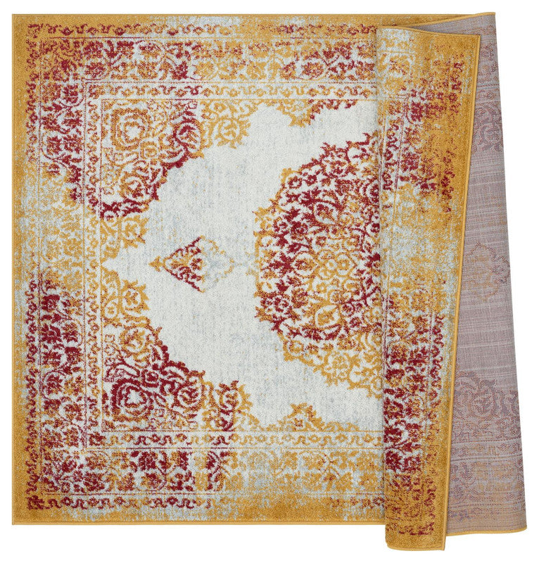 The Haven collection rugs create a vintage look in any room. These rugs offer a beautiful medallion pattern in trendy colors. The fashionable look and distressed finish blend beautifully with many decor styles. These rugs are 100% Polypropylene with machine made construction.
