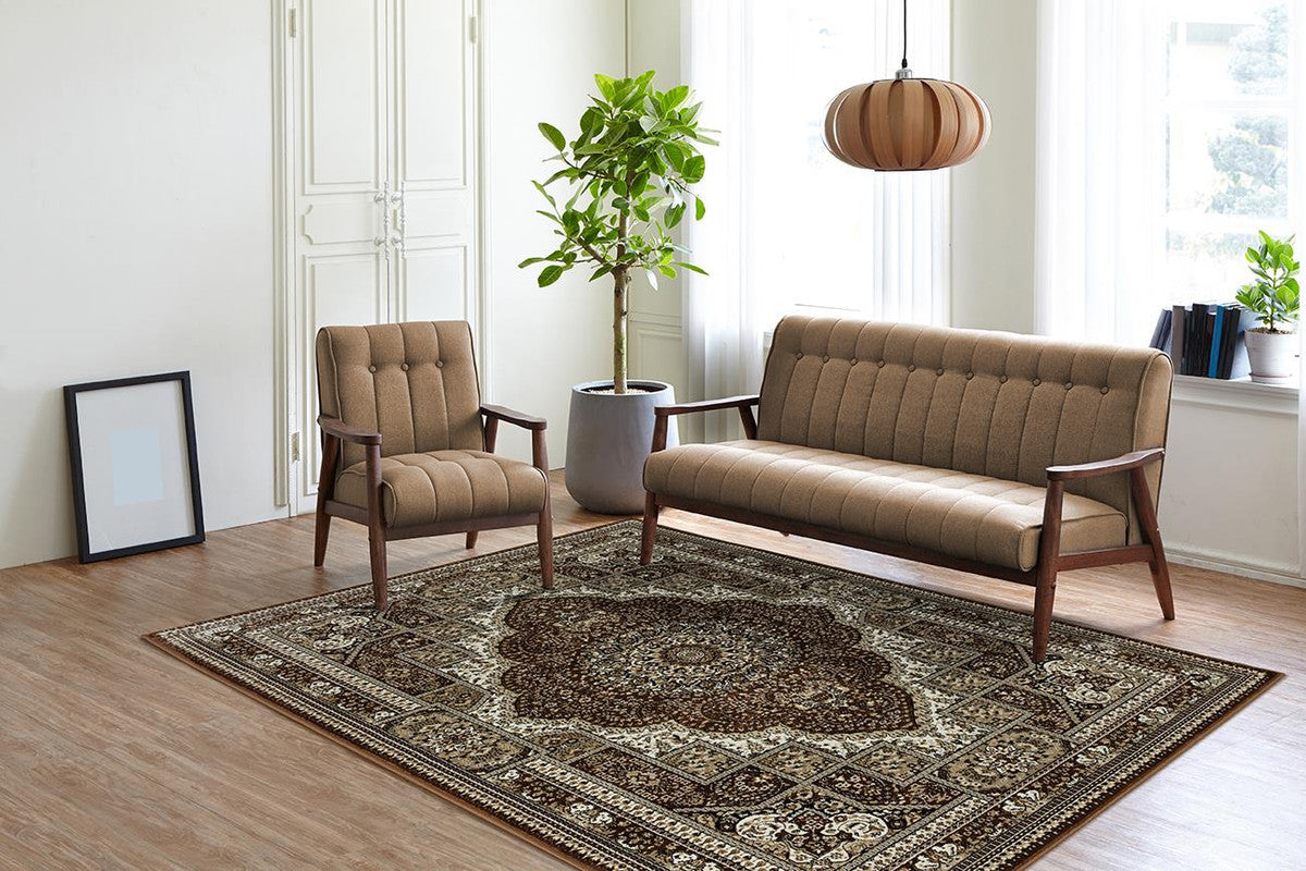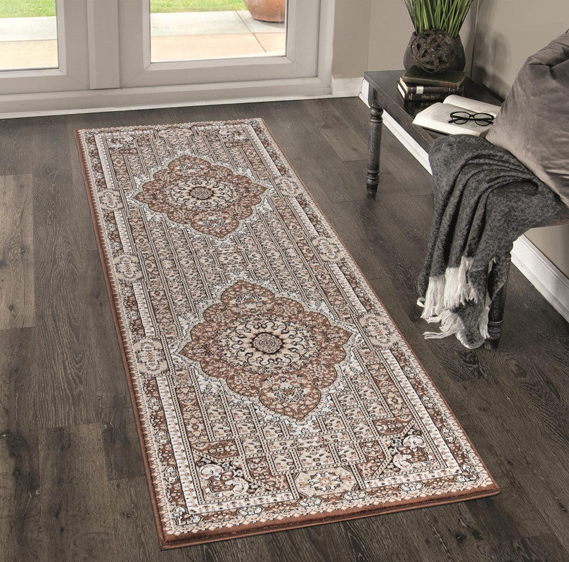 This Traditional designed rug collection is constructed from 100% polyester fiber. These beautiful rugs feature a woven construction with an edge serged finish. This rug will be the perfect enhancement to your living space.