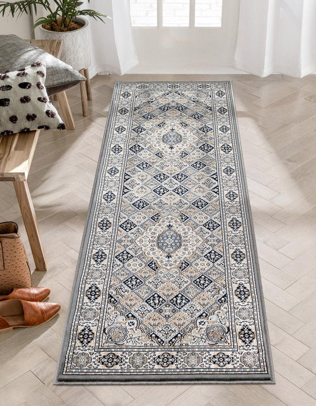 This Traditional designed rug collection is constructed from 100% polyester fiber. These beautiful rugs feature a woven construction with an edge serged finish. This rug will be the perfect enhancement to your living space.