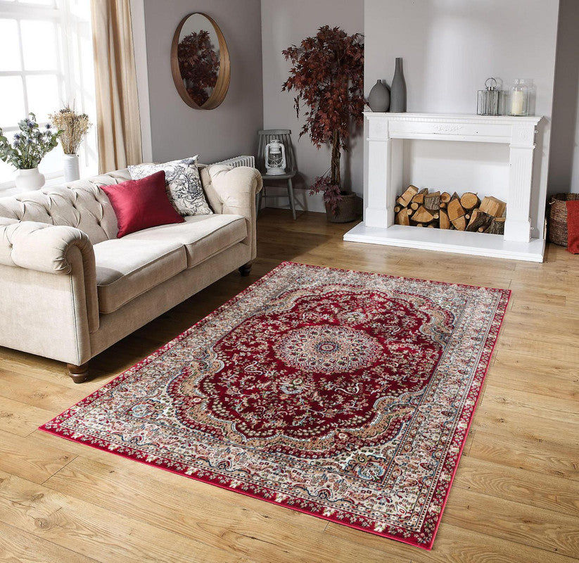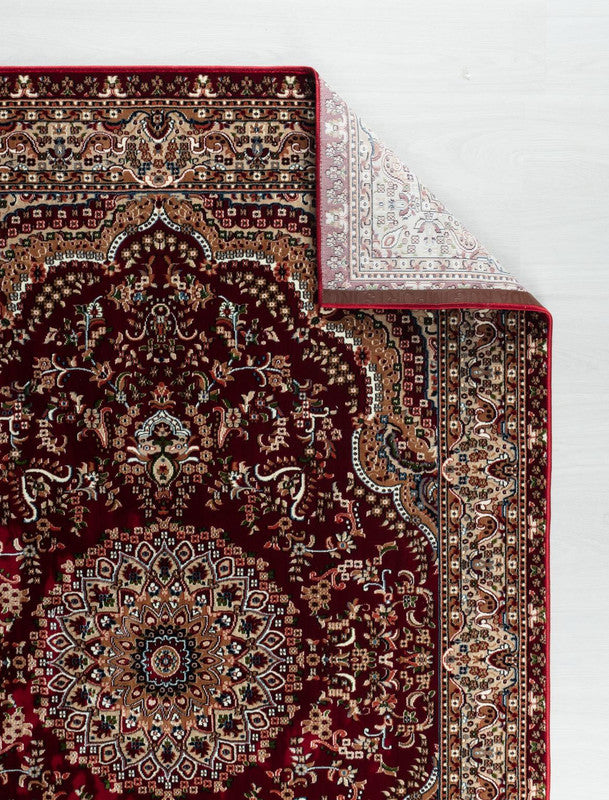 This Traditional designed rug collection is constructed from 100% polyester fiber. These beautiful rugs feature a woven construction with an edge serged finish. This rug will be the perfect enhancement to your living space.