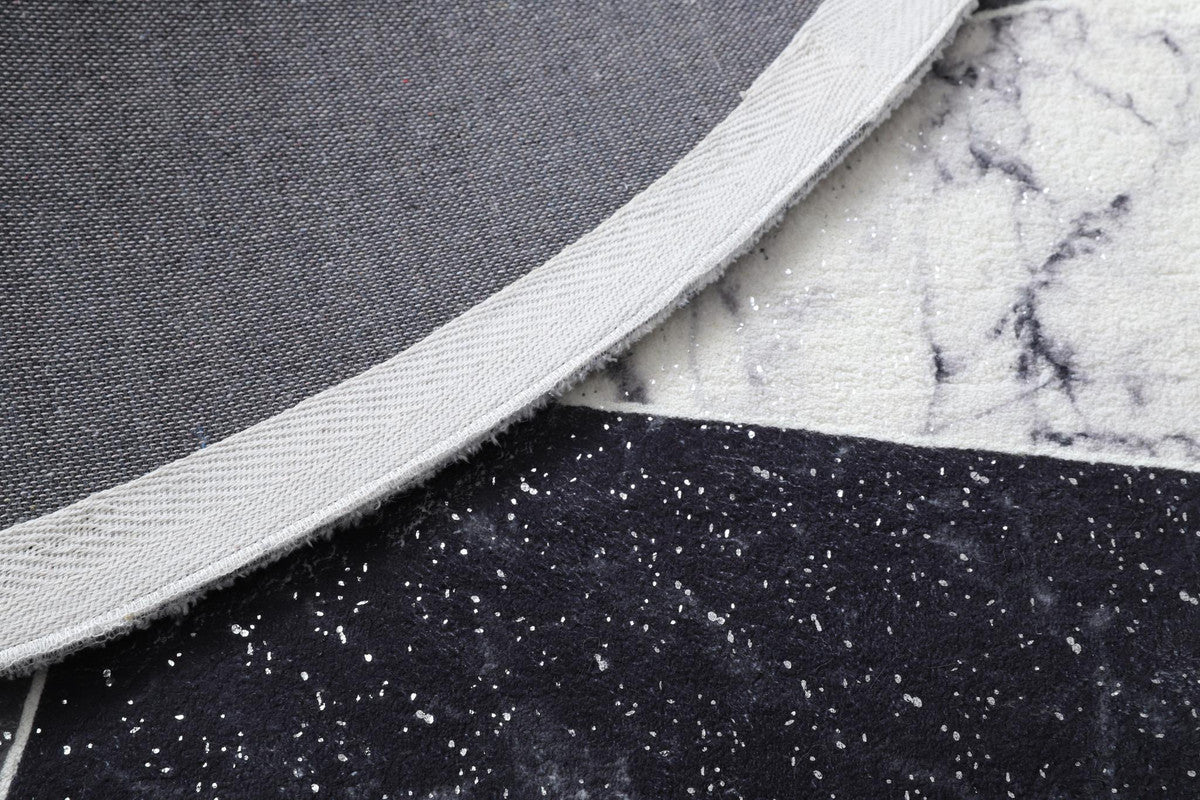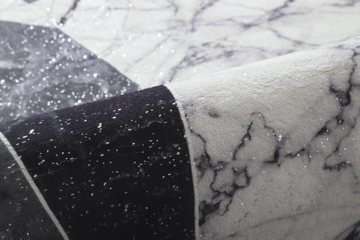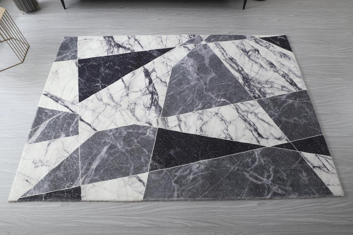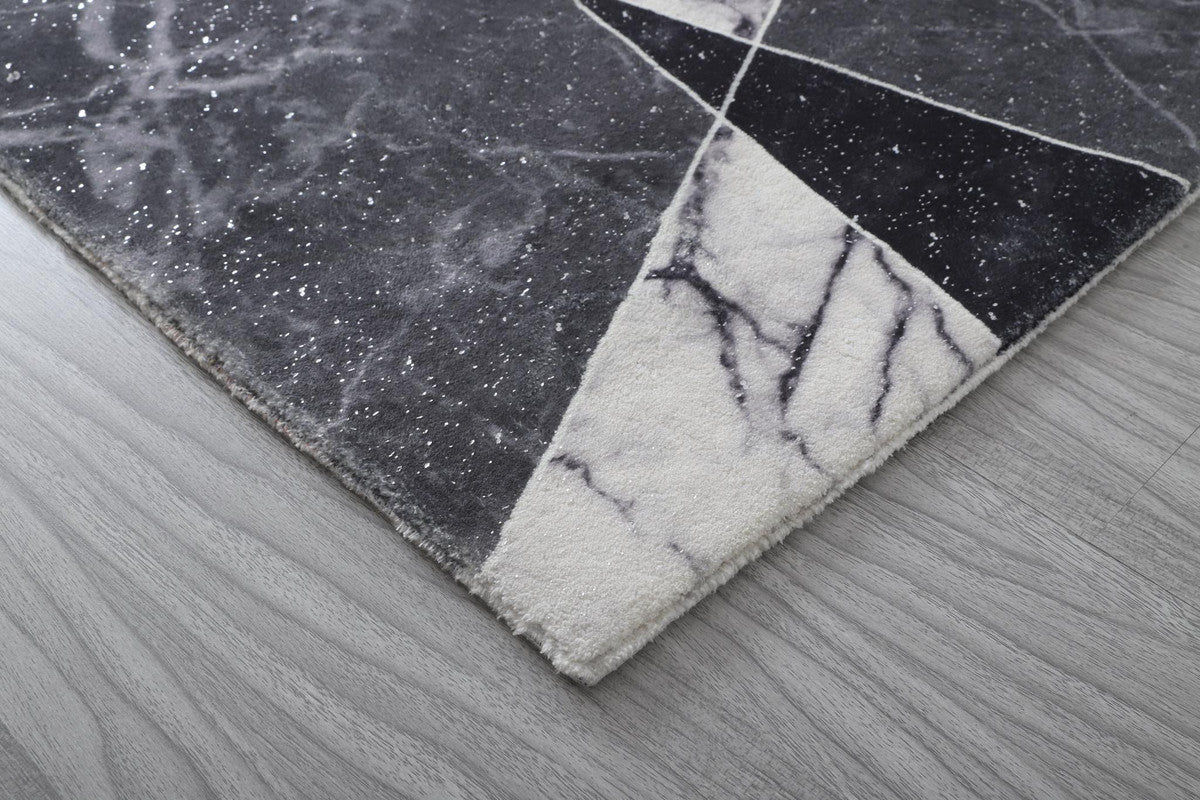 This abstract geometric rug is made from 100% polyester. This beautiful, soft shag is hand tufted. This rug will be the perfect enhancement to your living space.