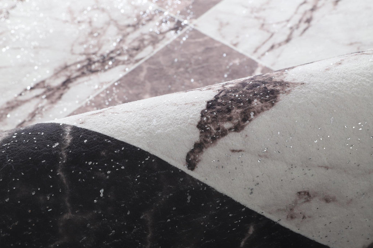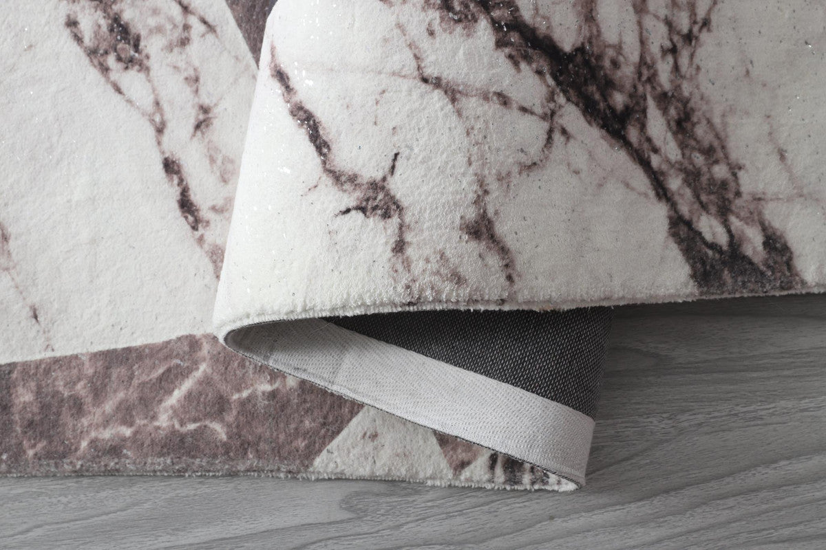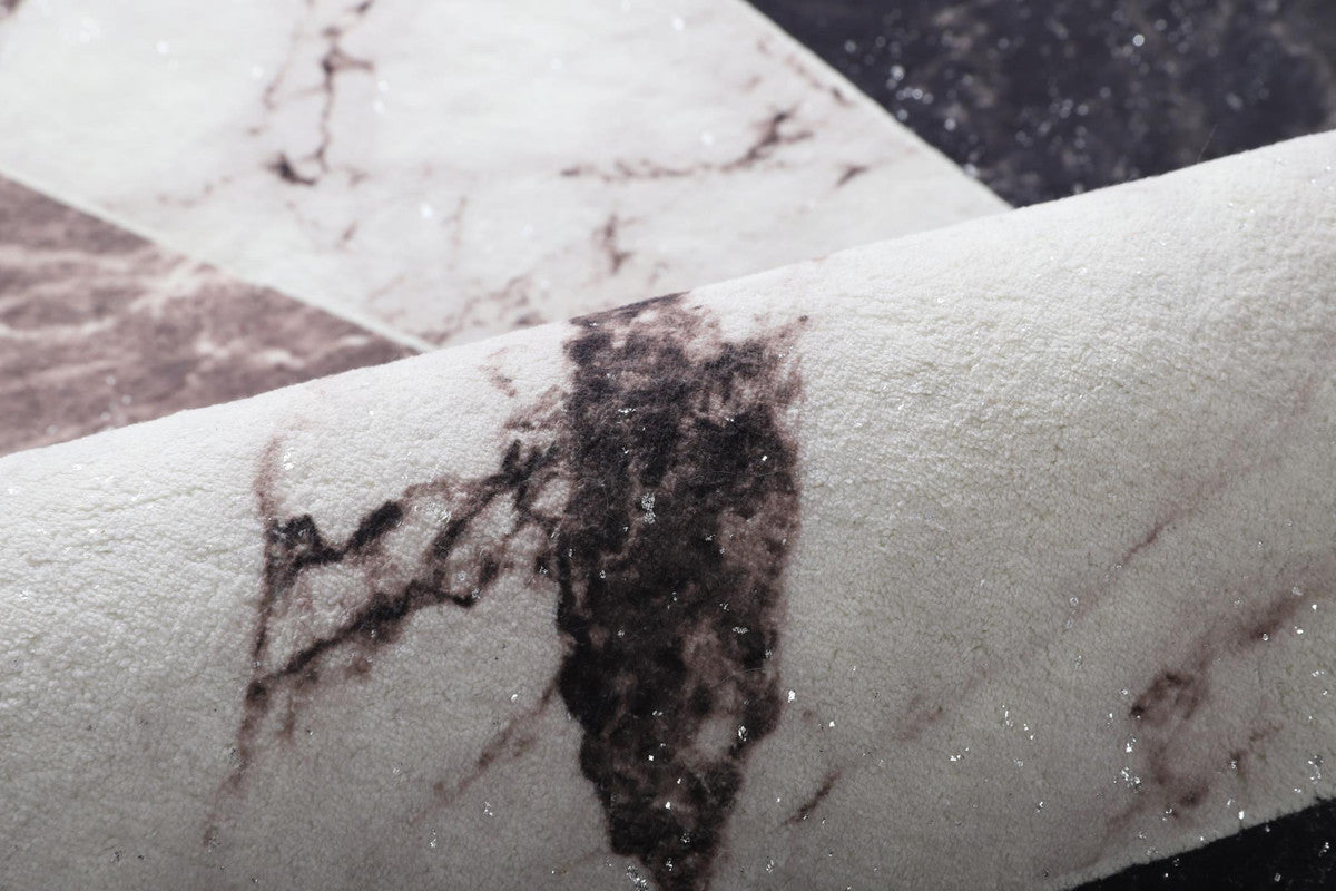 This abstract geometric rug is made from 100% polyester. This beautiful, soft shag is hand tufted. This rug will be the perfect enhancement to your living space.