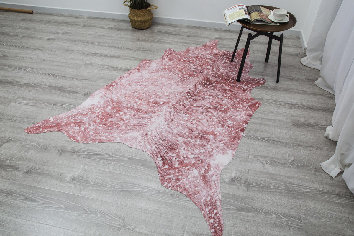 Brighten up your room with this contemporary, yet rustic faux cowhide rug. The cowhide shape adds a natural feel, while the foil accents provide stylish flair. This rug is not only beautiful it also provides a soft texture under foot.