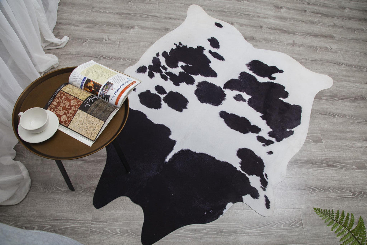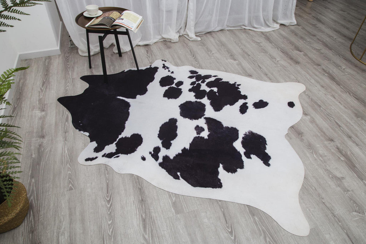 Brighten up your room with this contemporary, yet rustic faux cowhide rug. The cowhide shape adds a natural feel, while providing a soft texture under foot.