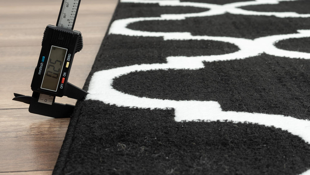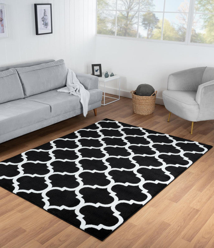 This contemporary trellis designed rug collection is constructed from 100% polypropylene with a Jute back. It features machine made construction and an edge serged finish. This rug will be the perfect enhancement to your living space.